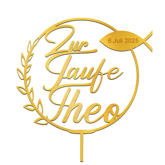 Personalisierter Caketopper „Zur Taufe“ mit Heiligem Fisch