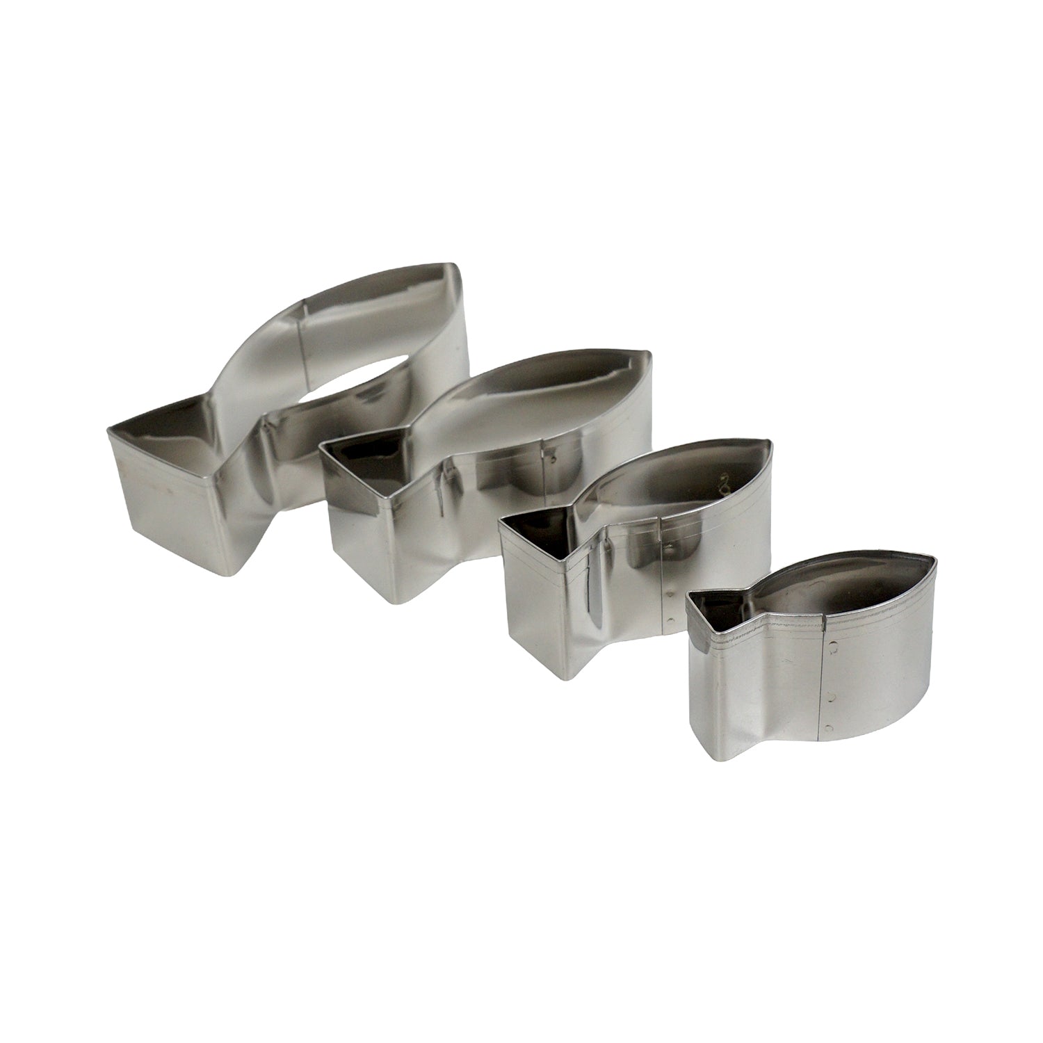 Dieses Ausstecher-Set „Heiliger Fisch“ besteht aus vier unterschiedlich großen Fisch-Ausstechern aus robustem Metall. Ideal für Taufen, Kommunionen und Konfirmationen – perfekt, um Kekse, Fondant, Marzipan oder andere Deko-Elemente im klassischen christlichen Fischsymbol zu gestalten.