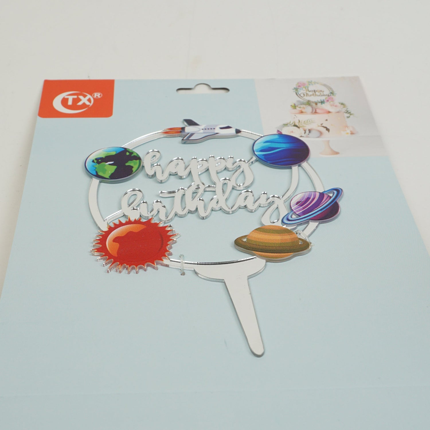 Kuchenstecker "Happy Birthday Weltraum" mit Planeten. Der Kuchenstecker ist eine tolle Geburtstags-Dekoration. Einfach in den Kuchen oder die Torte einstecken und je nach persönlichem Geschmack mit weiteren Dekorationselementen ergänzen.